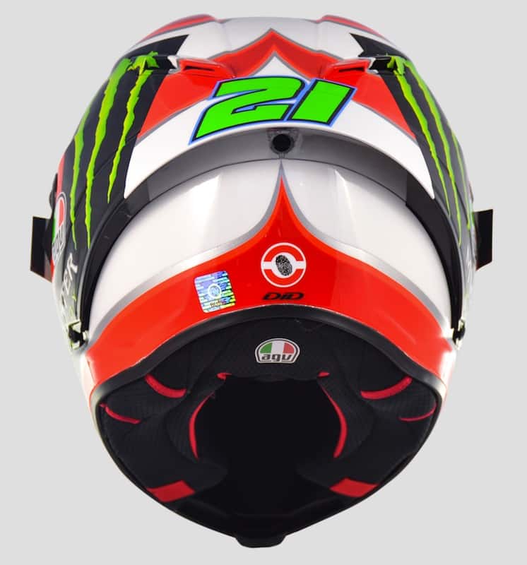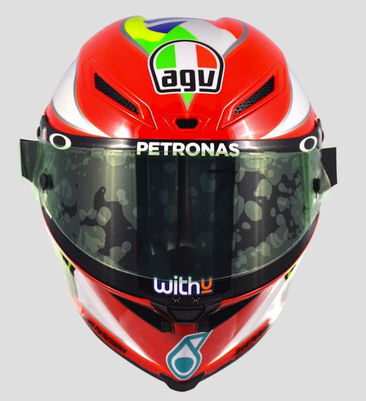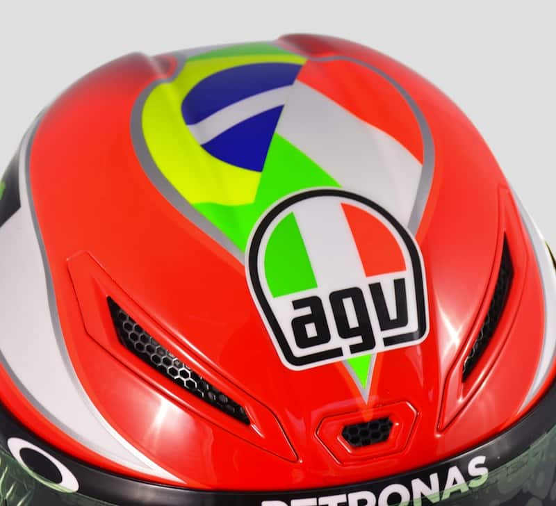Pour mémoire, les deux pilotes roulent équipés du haut de gamme racing AGV : le Pista GP R, un casque né et fait pour la piste. Présent dans la gamme du fabricant italien l’intégral en fibres est disponible pour le grand public au tarif débutant à 1 500 euros. Tailles : du XS au 2XL.