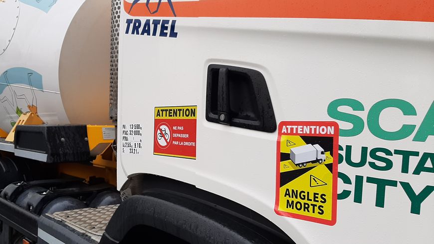 Ces nouveaux stickers devront être collés sur le flan et l’arrière des poids-lourds de plus de 3,5 tonnes qui circulent en milieu urbain. Ils représentent par de larges zones jaunes les angles morts, ces espaces invisibles depuis la place du conducteur. Ces zones sont particulièrement dangereuses pour les usagers vulnérables : piétons, cyclistes, scooters, motos ou encore trottinettes qui se faufilent dans la circulation. L’objectif de ces autocollants est donc de les alerter sur les dangers des angles morts.
