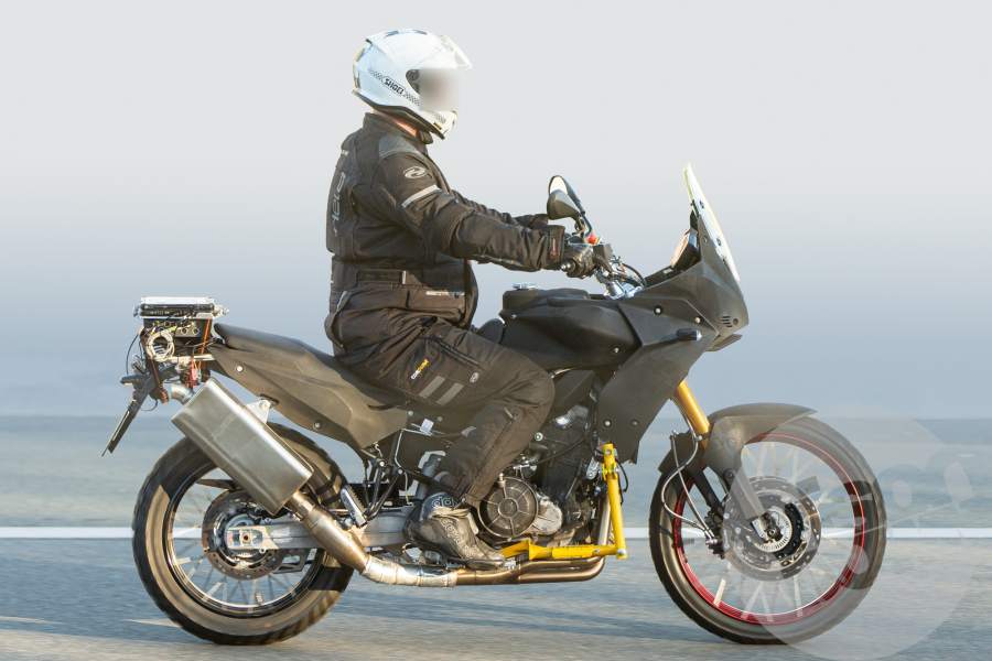 Clairement, c’est le 700 Ténéré de chez Yamaha qui semble être la cible.  Au vu de la machine prise en liberté, on constate un opus plus très loin d’un modèle final si on élimine la partie jaune. La fourche est à long débattement et les étriers radiaux Brembo répondent présents. Il reste maintenant à connaître la fiche technique, sachant que le moteur de la Tuono a été revue pour la vocation en perdant 5 ch par rapport à la RS. Dans les deux cas, l’équipement est alléchant et le dispositif électronique de grande classe. Quid de la Touareg ? Avec plus de couple ? A priori, on devrait en savoir un peu plus assez vite.