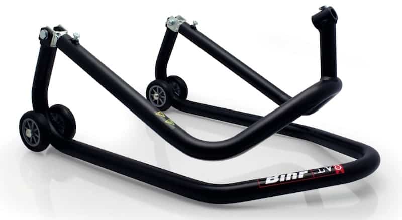 Bihr-racing via sa marque propre LV8 se charge de soulever l’avant de votre moto avec une béquille de stand spécifique. La LV8 s’adapte à l’avant de votre machine grâce à différents adaptateurs inclus.