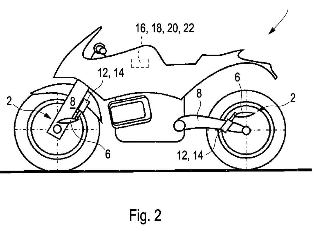 Les images du brevet qui montrent les idées de développement sont généralement simplistes, illustrant le concept sans donner trop de détails en termes d’apparence finale. Cependant, en plus d’illustrer les profils aérodynamiques normaux montés sur les carénages, ils montrent une disposition alternative avec des ailerons montés sur la fourche et le bras oscillant.