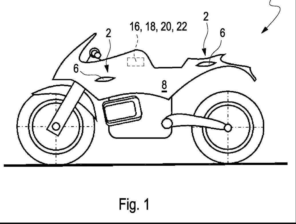 Les images du brevet qui montrent les idées de développement sont généralement simplistes, illustrant le concept sans donner trop de détails en termes d’apparence finale. Cependant, en plus d’illustrer les profils aérodynamiques normaux montés sur les carénages, ils montrent une disposition alternative avec des ailerons montés sur la fourche et le bras oscillant.
