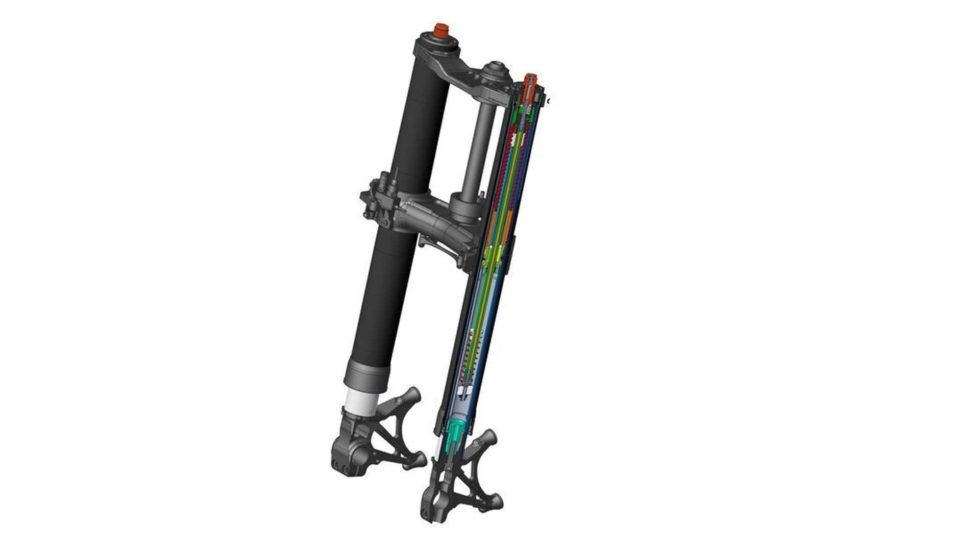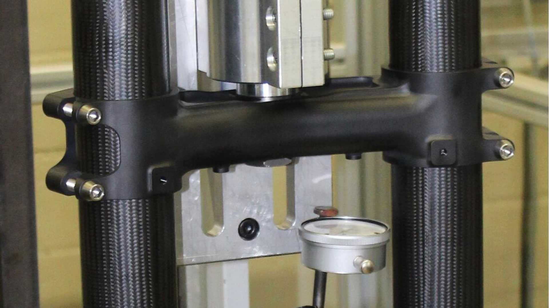 Alors que les parties avant en fibre de carbone sont monnaie courante en MotoGP, BMW ne participe pas à cette compétition. En conséquence, BMW s’est tourné vers le championnat du monde d’endurance comme banc d’essai pour son nouveau composant. Suspendue à la BMW M 1000 RR numéro 37, la fourche se compose d’un tube extérieur en fibre de carbone couplé à un tube intérieur en composite fibre de carbone/métal. Semblables à la plupart des fourches inversées, les fourreaux de fourche en métal glissent dans les tubes composés de fibres de carbone.