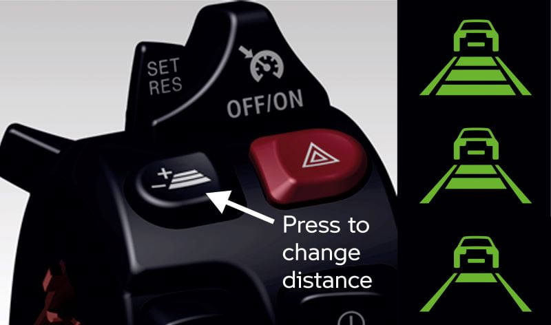 Le nouvel ACC de BMW Motorrad est un contrôle de vitesse adaptatif. Cette aide à la conduite régule automatiquement votre vitesse (définie par le pilote) et la distance par rapport au véhicule qui vous précède. Après avoir réglé ladite distance suivant trois niveaux (via un bouton au guidon et affichage de mode sélectionné affiché sur l’écran TFT), le système régule automatiquement la vitesse de la moto en maintenant la distance souhaitée par le motard.