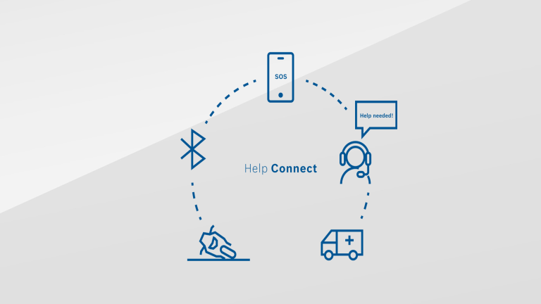 Selon les informations publiées par Bosch, Help Connect est une solution intégrée capable de combiner la détection automatique des accidents, la fonction d’appel d’urgence et le système de réponse personnelle en cas d’urgence.
