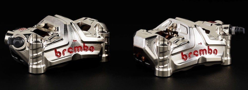 Réservés uniquement à la piste, les GP4-RR sont désormais rejoints par cette version homologuée, autrement dit capable d’être montée sur une moto de route. Ce n’est pas pour autant que Brembo baisse ses exigences techniques. Inspirés des étriers développés par l’italien pour le MotoGP, ces monoblocs sont, bien sûr, taillés dans la masse à partir d’un unique bloc d’aluminium. Pas de moulage donc et une promesse de caractéristiques mécaniques des plus élevées notamment sur le registre de la résistance aux hautes températures.