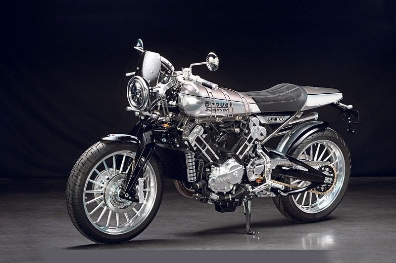 En plus de la puissance de 100 ch développée par le bicylindre en V à 90° de 997cc, de la nouvelle fourche double style Fior, des grosses roues de 18 pouces au style rétro, des disques Beringer de 230 mm, la série limitée Bert Le Vack est équipée de sangles de réservoir en titane sur lesquelles est apposé le numéro de série (limitée) de la machine. La machine exclusive a également une peinture spéciale gris titane rappelant la Brough Superior du passé, en plus d’un rappel de la signature utilisée par la légende à l’époque.
