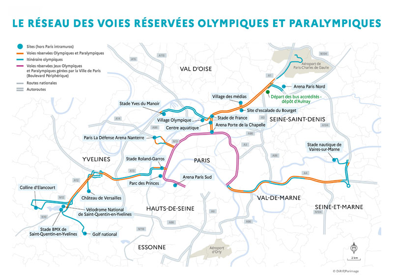 « En effet, avec les Jeux olympiques et paralympiques, la circulation sera très dense et les cisaillements d’axes par des véhicules de grande capacité seront très nombreux sur les 185 km de voies réservées à la circulation des véhicules accrédités pour transporter les athlètes, les délégations officielles, les véhicules de secours et de sécurité, les taxis, les ambulances ou encore les transports en commun (circulant dans le cadre d’une mission de service public) et les journalistes accrédités.