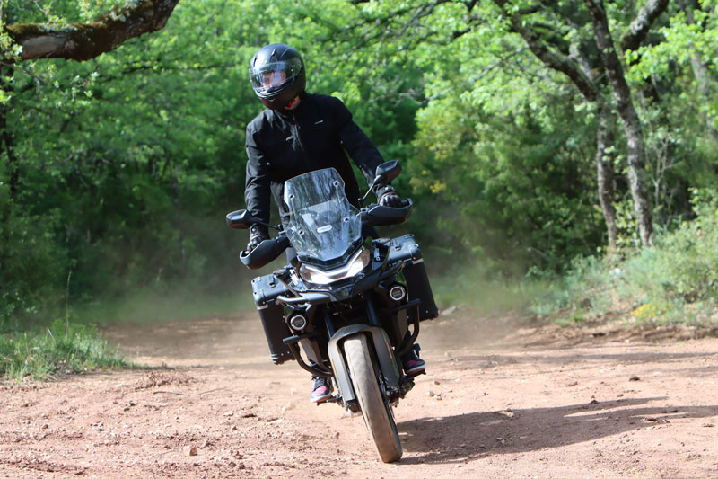 Le freinage est toujours confié à des éléments J. Juan et un ABS à centrale inertielle affine les réactions et repousse les performances sur l’angle maxi. Un avantage considérable pour les conditions sportives sur goudron, mais également en off-road (on le verra avec les différentes modes).