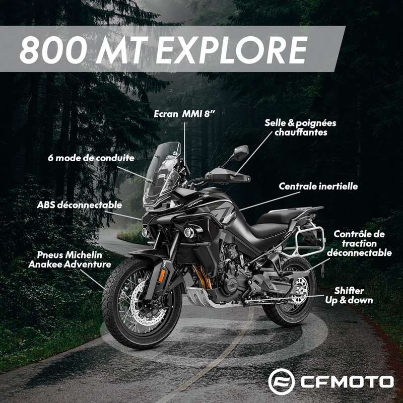 Évolution du best seller 800MT, CFMOTO présente l’Explore pour ce Printemps 2023: une version upgradée, suréquipée, avec une électronique plus évoluée.