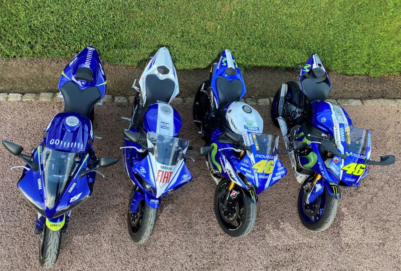 Particulière parce qu’elle réunit 4 Yamaha YZF-R1 produites en série limitée aux couleurs de Valentino Rossi: