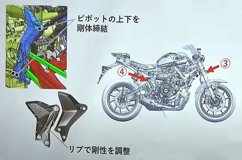 En visionnant sa vidéo, et même sans parler le japonais, on y découvre quelques élément intéressants diffusés par Yamaha, à commencer par les dessins de côté qui illustrent bien les gènes communs des deux machines.