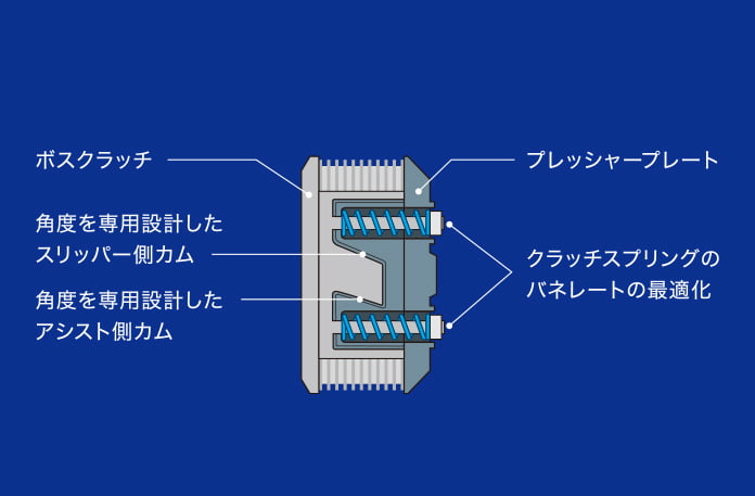 L’embrayage anti-dribble FCC déjà évoqué se nomme Assist & Slippers. Il supprime l’influence du couple arrière, comme lors de la rétrogradation, sur le comportement du véhicule, supprime le freinage moteur excessif et améliore la sensation de stabilité pendant la décélération. De plus, la charge de fonctionnement du levier d’embrayage a été réduite d’environ 33%. Le système n’est toutefois pas nouveau, présent par exemple sur la XSR900 depuis 2016.