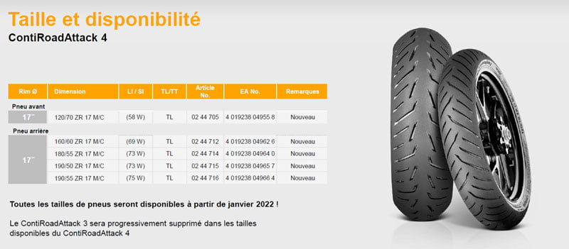 Le pneumatique ContiRoadAttack 4 est d’ores et déjà disponible dans les dimensions suivantes :
