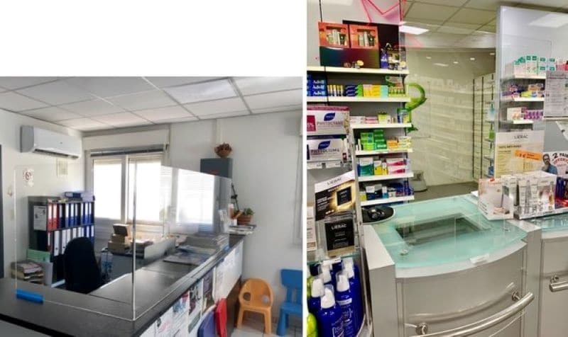 Sur-mesure, les éléments de protection sont réalisés en Plexiglas ou polycarbonate (Lexan) 3 mm transparent, avec ou sans ouverture, protégeant ainsi des postillons et d’un contact rapproché, principaux vecteurs de transmission de l’épidémie pour le public, le personnel médical et soignant…