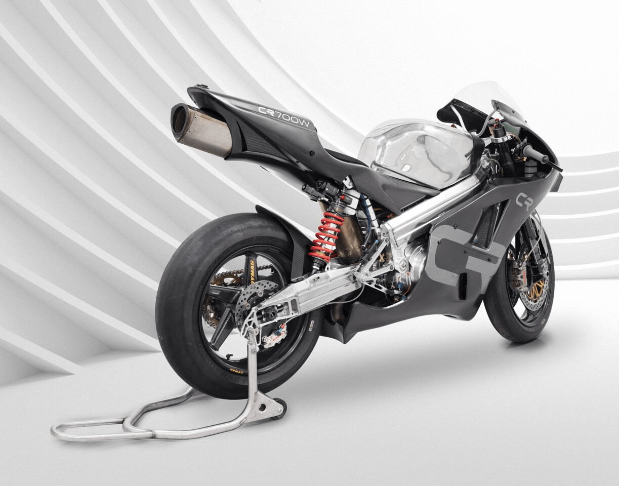 La CR700W affiche un rapport poids/puissance de 1,68 ch par kg, supérieur à celui de n’importe quelle superbike disponible dans le commerce, grâce à son poids à sec ultra-léger de 129,5 kg. Mis en contexte, les superbikes de course les plus puissantes délivrent environ 1,5 ch par kg tandis que les MotoGP d’usine délivrent 1,65 ch à 1,78 ch par kg.