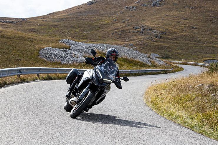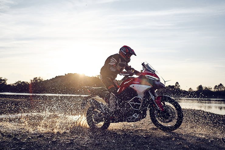 Tous ces modèles partagent le même cadre monocoque en aluminium placé au sommet de ce nouveau moteur V4, avec un une boucle arrière style treillis pour garder un lien visuel avec les conceptions traditionnelles de l’entreprise. Une roue avant de 19 pouces et une roue arrière de 17 pouces sont communes à toutes les versions. La suspension offre un long débattement – 170 mm à l’avant et 180 mm à l’arrière – tandis que le moteur compact permet à la garde au sol d’augmenter jusqu’à 220 mm, soit 46 mm plus haut que la Multistrada 1260.