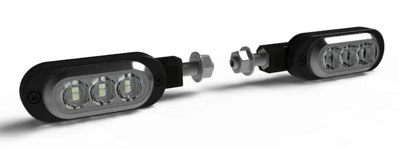 « Contrairement aux autres indicateurs de direction switchback, le T3 présente deux rangées distinctes de LED haute puissance de couleur unique, par opposition aux LED bicolores plus faibles. Cela procure une lumière d’une luminosité surprenante qui rivalise d’intensité avec les feux de position LEDs de 10 watts » souligne la parole officielle de la marque.