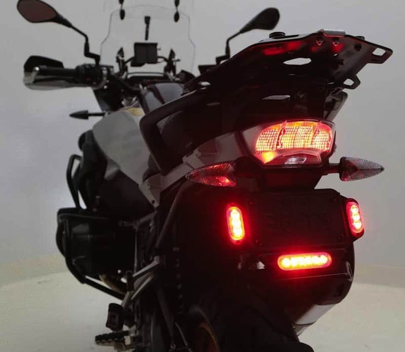 À l’arrière les LEDs sont cette fois de couleur rouge jouant le rôle de feux de position et de freinage, ils passeront également à l’orange lorsque le clignotant est en fonction.