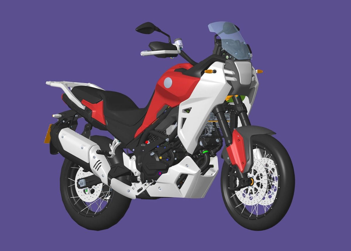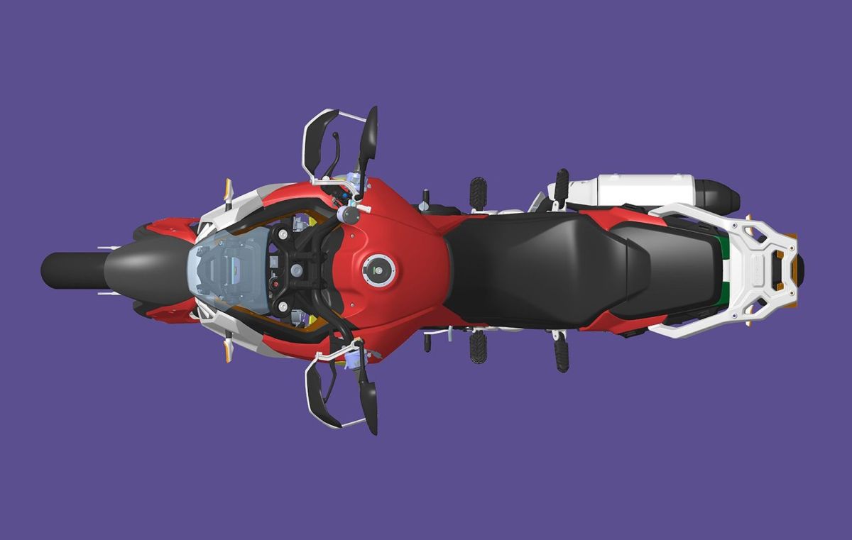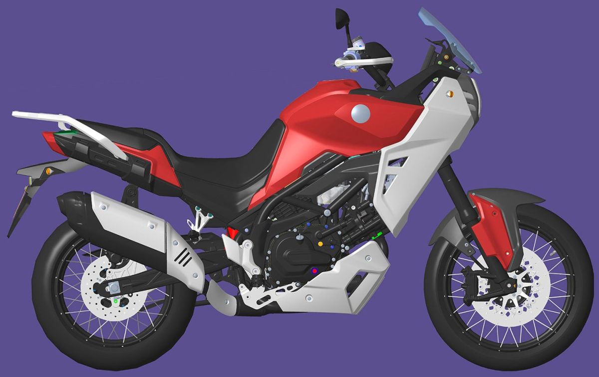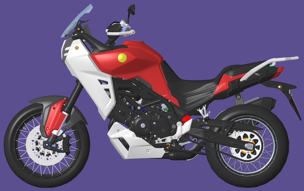 Fait intéressant, les images divulguées ont révélé une vision différente pour une moto d’aventure de moyenne cylindrée, avec une bulle relativement courte, un phare à LED unique combiné à deux DRL (feux de jour), un carénage latéral imposant et des protèges-mains.