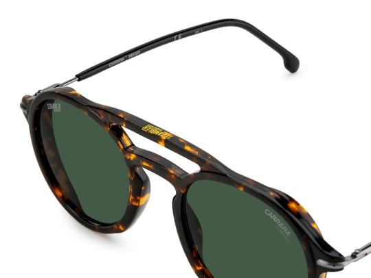 Le style des lunettes de soleil reflète l’esthétique Carrera qui est enrichie par des détails de la marque Land of Joy, tels que le logo Scrambler Ducati sur le verre droit et les finitions dans la couleur classique « 62Yellow ». Le double-pont porte la signature Scrambler Ducati et le logo célébrant le 60ème anniversaire de la marque apparaît sur la branche droite. Le tout enrichi par un emballage exclusif personnalisé avec les marques distinctives Scrambler Ducati présentes sur les lunettes.