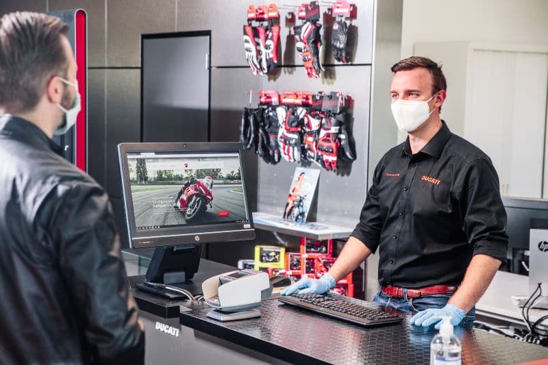 Depuis le 11 mai dernier les concessions Ducati ont réouvert leurs portes tant côté entretien que vente de motos neuves ou d’occasion avec en toile de fond le programme « Ducati Cares » définissant les conditions d’accueil en concession de la clientèle et des collaborateurs de la marque de Borgo Panigale.