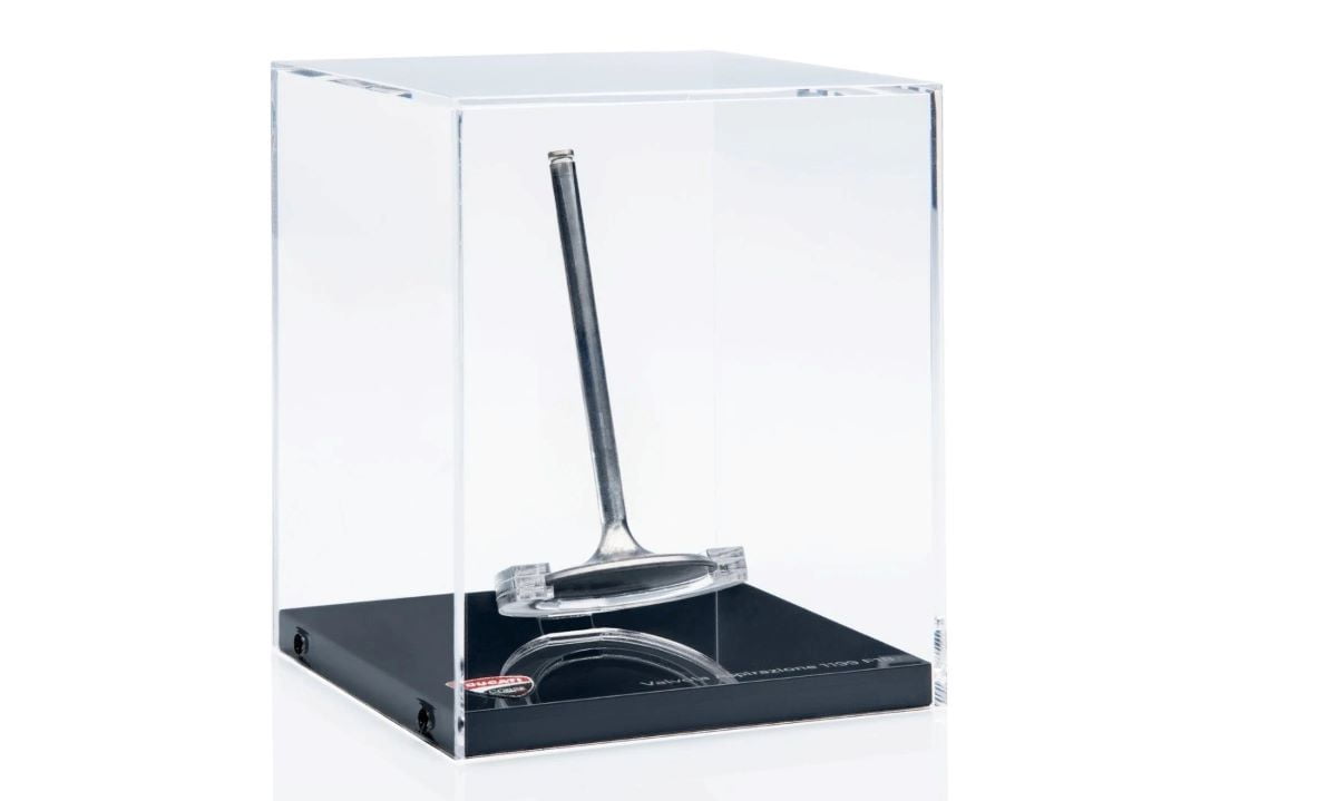 Chaque pièce « Memorabilia » est emballée dans une boîte élégante et accompagnée de son certificat d’authenticité signé par Claudio Domenicali et Gigi Dall’Igna. Chaque pièce sera protégée et mise en valeur par un boîtier en plexiglas, avec la gravure du nom de la pièce et de la moto d’où elle provient, ainsi que le certificat d’authenticité.