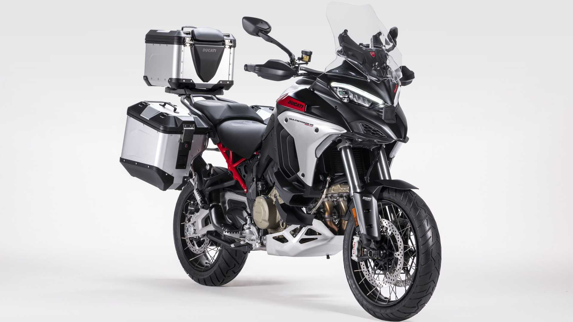 Le châssis, la suspension et les roues (pour les pneus tubeless) mis à part, confirment le cadre monocoque en aluminium, le bras oscillant double face coulé dans la coque en aluminium et les 19-17 pouces des jantes déjà adoptées par la Multistrada V4. Le poids à sec est déclaré en 227 kg, monte à 260 kg en ordre de marche et avec un réservoir plein.