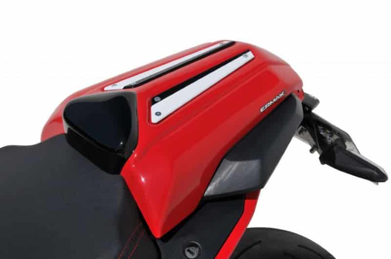 Ermax n’oublie pas de concevoir un capot de selle qui sera enrichi de platines en aluminium anodisé. Comme à chaque fois le kit de fixation et une notice de montage font partie de l’envoi.
