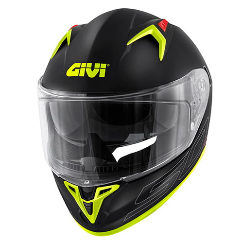 Ce nouveau modèle en résine polycarbonate injectée est le haut de gamme sportif touring de la gamme de casques GIVI  2022. Avec cette déco SOLID COLOR, l’association d’un noir profond et de touches de couleurs sur les pièces techniques donne une esthétique ultra agressive à ce casque sportif .