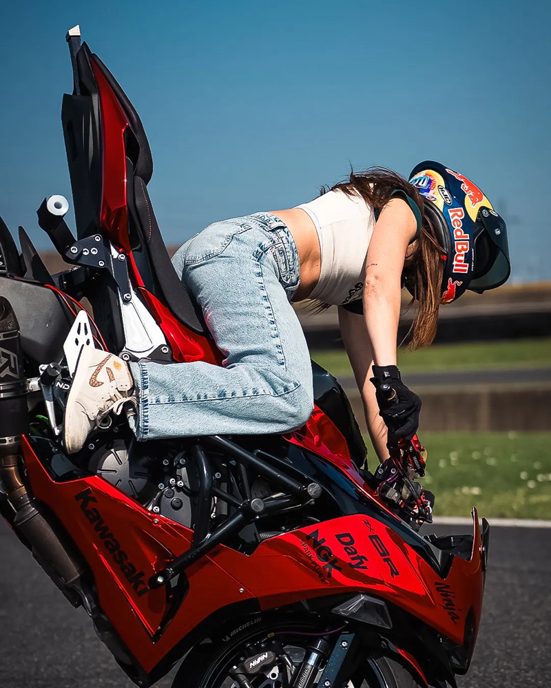 Avec des millions de fans sur les réseaux sociaux, Sarah est devenue une icône mondiale dans le monde des sports mécaniques et du divertissement.