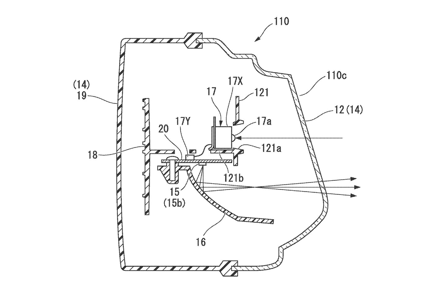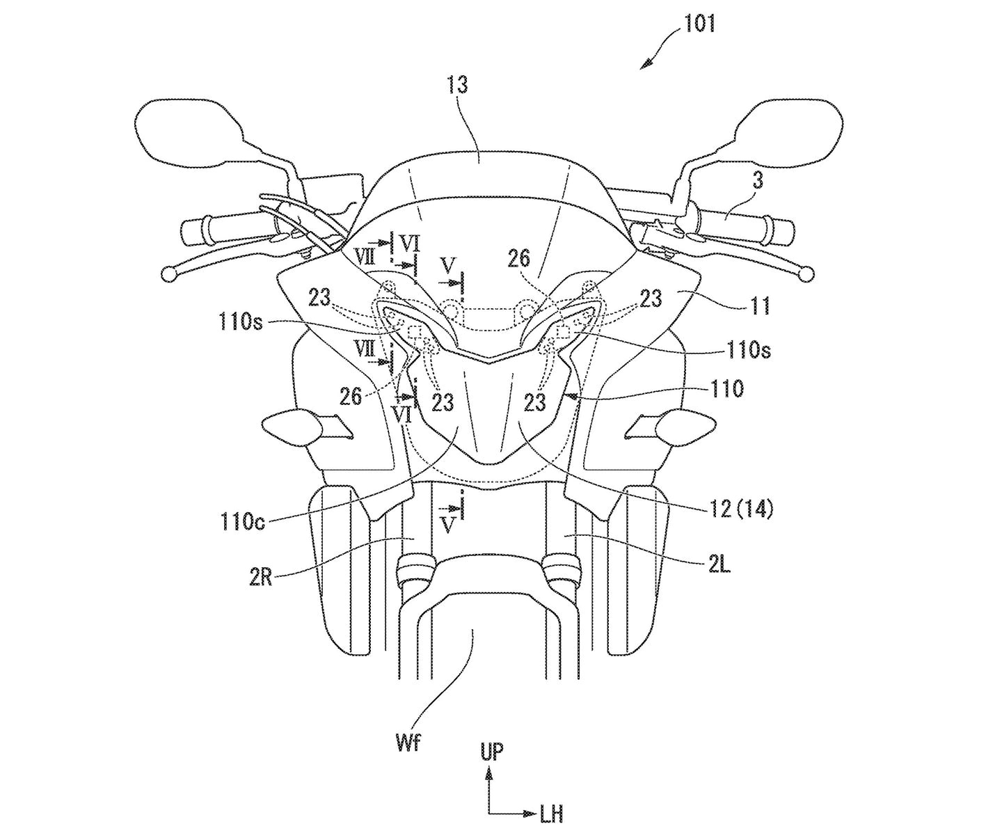 Le brevet de Honda montre des capteurs d’image montés à l’intérieur des phares des motos, juste à côté des LED des feux eux-mêmes. Dans les images ici, les capteurs sont étiquetés « 17 » et « 26 » tandis que les LED sont « 15 » et « 23 ». Un panneau de commande électronique est également monté à l’intérieur du phare, ainsi que des parois internes pour empêcher le capteur d’image d’être aveuglé par la lumière des LED. L’idée semble avoir plusieurs avantages, en particulier lorsqu’il s’agit d’intégrer la technologie des capteurs dans les dimensions d’une face avant de moto sans gâcher son apparence.