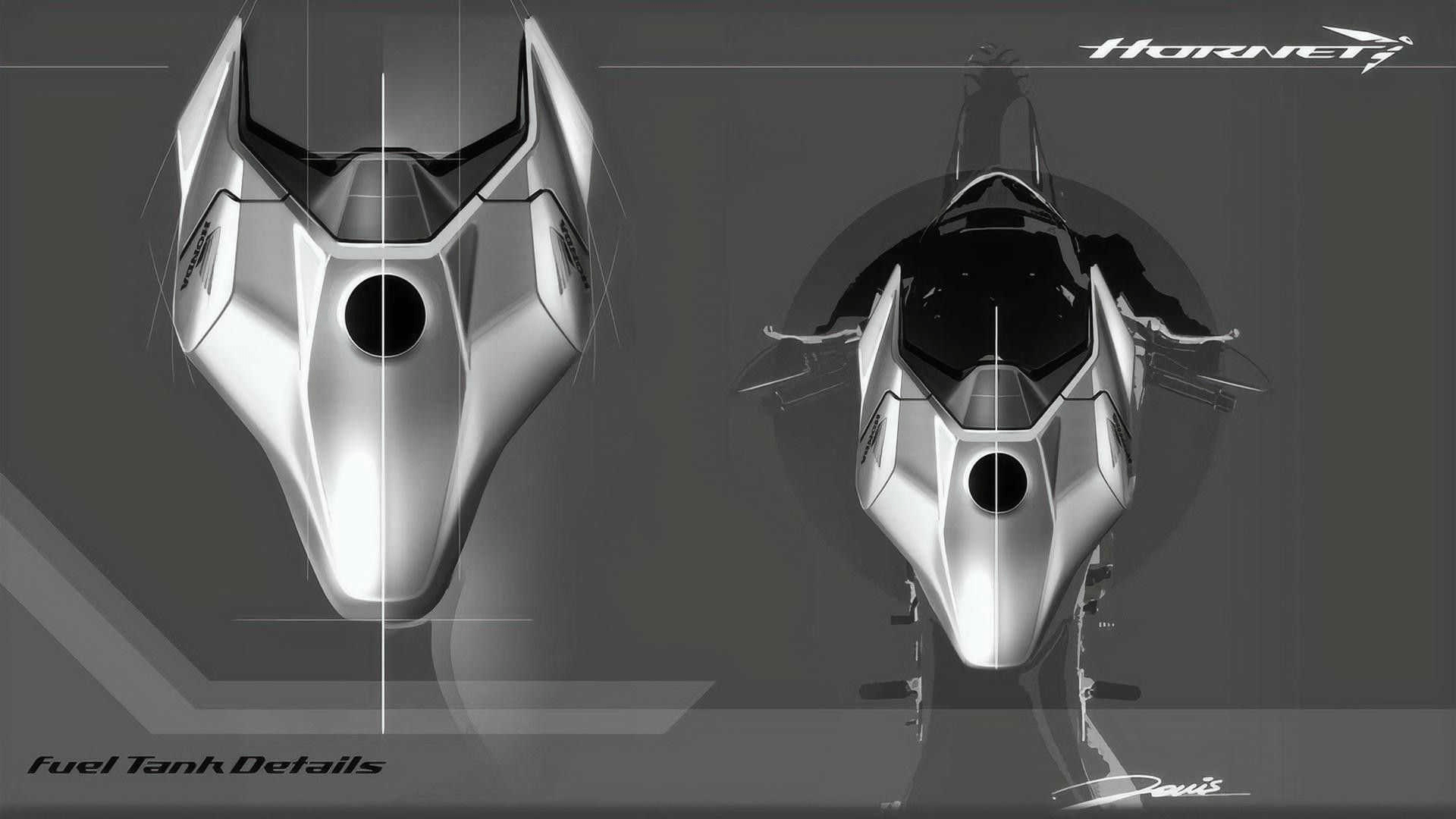 Le style a été conçu dans le centre de R&D européen de Honda à Rome, où Giovanni Dovis, le concepteur de l’ADV350, a été chargé de créer la nouvelle Hornet. Parlant de ses décisions de conception, il a déclaré : « La philosophie de conception de Honda est de créer quelque chose de pur et fonctionnel d’une manière simple – des modèles qui sont à la fois magnifiquement simples et émotionnellement attrayants. Les croquis montrent comment le concept de design Hornet promet agilité, dynamisme et légèreté grâce à ses proportions minces, sa section arrière pointue et ses lignes super nettes. Il crée un nouveau look aux proportions compactes et présente des caractéristiques de tension et d’agressivité de l’avant vers l’arrière, soulignant le véritable objectif sportif de la Hornet. »