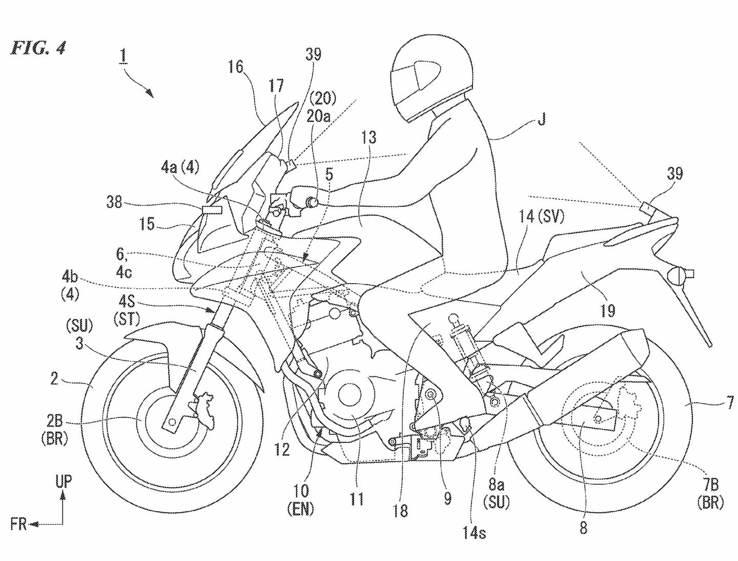 Pour être clair, les dessins dans ces demandes de brevet utilisent une Gold Wing comme exemple de véhicule. Cependant, il est clairement indiqué dans ces brevets que, bien que leur exemple de véhicule ait un grand carénage derrière lequel cacher l’unité de commande – et d’autres parties intégrantes du système – il pourrait également être utilisé pour les scooters, vélos électriques ou autres véhicules à deux roues.