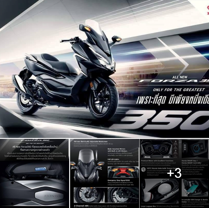 Le nouvel opus bénéficierait du tout nouveau cadre en tube d’acier tubulaire apparu sur le dernier millésime du scooter, offrant un poids plus léger de 12 kg ce qui profite aux performances moteur mais aussi à la consommation de carburant. Il ne se passerait pas plus du système de contrôle de couple HSTC Honda, inédit sur un scooter Honda, pour une traction parfaite. Un éclairage full LED, une bulle à réglage électrique de série, ainsi qu’un tableau de bord avec écran LCD Multi-information. Le Forza 350 conserverait toutes les qualités de son origine 300 GT, avec des qualités sportives plus affirmées.