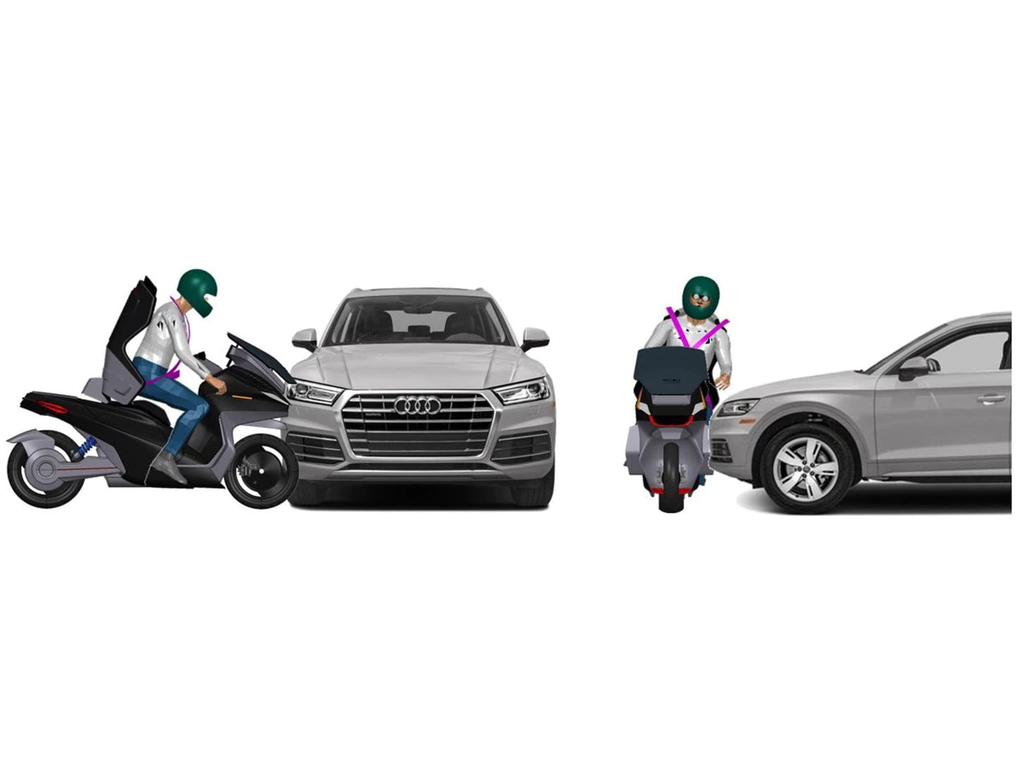 L’idée d’être attaché à une moto plutôt que dans l’habitacle d’une automobile semble originale. Sans la cellule de sécurité d’une voiture, il est souvent plus logique de s’éloigner le plus possible de sa moto lorsque tout va mal, mais l’idée d’Italdesign est de créer un système de ceinture de sécurité qui vous maintienne en place dans certains accidents, tout en vous permettant de vous séparer de la moto dans d’autres.