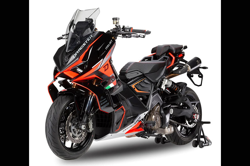 Il est construit sur une plateforme proche de celle du Dragster 700 Twin, mais avec une identité propre. Sa silhouette agressive rappelle plus une moto « naked » qu’un scooter traditionnel, dans la lignée des aspirations de la marque à brouiller les frontières entre les catégories.