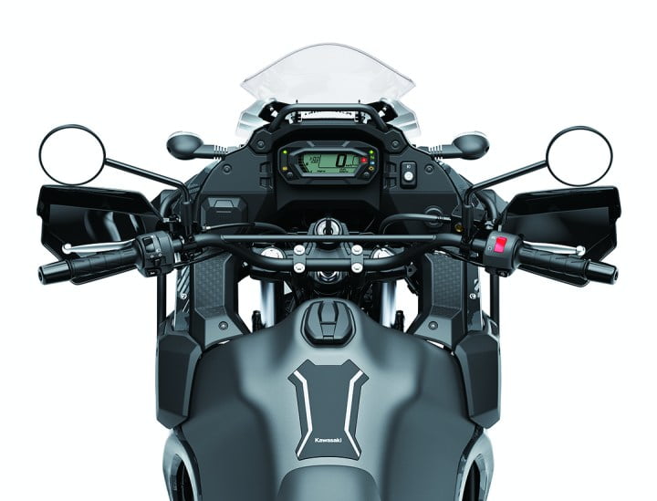 Kawasaki a mis à jour le pare-brise pour qu’il soit réglable sur deux positions. Un nouveau réservoir de carburant de 23 litres devrait augmenter l’autonomie. Kawasaki a opté pour un éclairage LED et un nouveau tableau de bord numérique.
