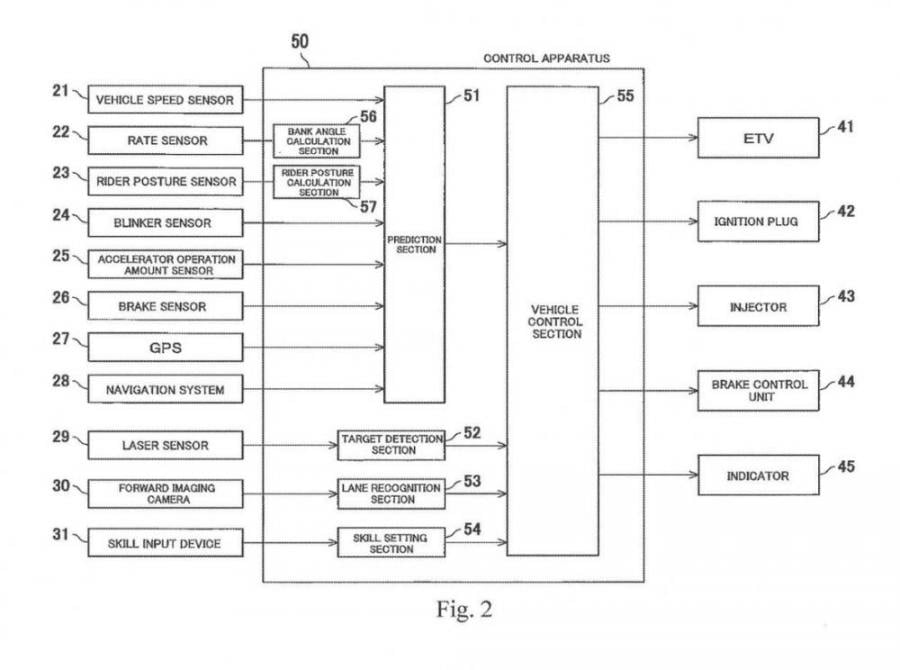 L’un des principaux changements constatés dans les brevets est la manière dont la moto recueille des informations sur ce qui se passe autour d’elle. Au lieu de se fier uniquement aux capteurs, aux accéléromètres et au moteur, le nouveau système recueille également des données provenant de capteurs situés sur la selle, les repose-pieds et les caméras situées autour de la moto, en plus des signaux déjà reçus de l’IMU de la moto.