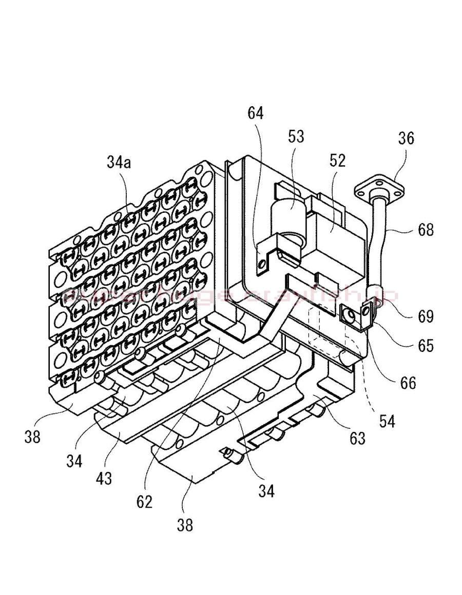 D’après ces brevets, il semble que les ingénieurs du département R&D de l’usine d’Akashi travaillent d’arrachepied – et sont à un stade très avancé – sur une batterie inédite capable d’accumuler l’énergie générée par un moteur thermique.