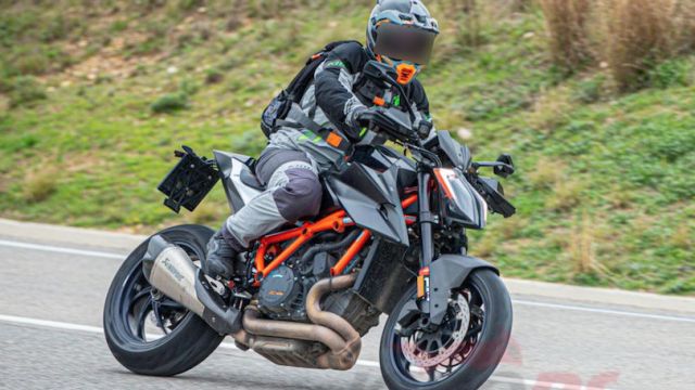 La nouvelle KTM 1290 Super Duke RR, la version la plus agressive des « bêtes » de Mattighofen, a été surprise en pleins tests. Sur les photos, vous pouvez voir une grande utilisation du carbone, ce qui améliore le poids global et surtout le rapport poids/puissance de la machine.