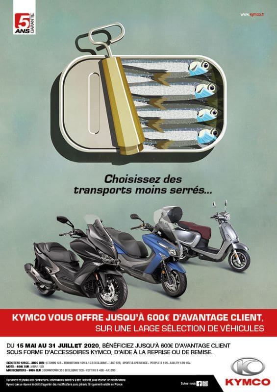 Ne pas être serrés comme des sardines, retrouver le chemin de la mobilité dans cette période de déconfinement, Kymco met la main à la poche et vous propose différentes offres commerciales allant jusqu’à 600 balles d’avantages client.