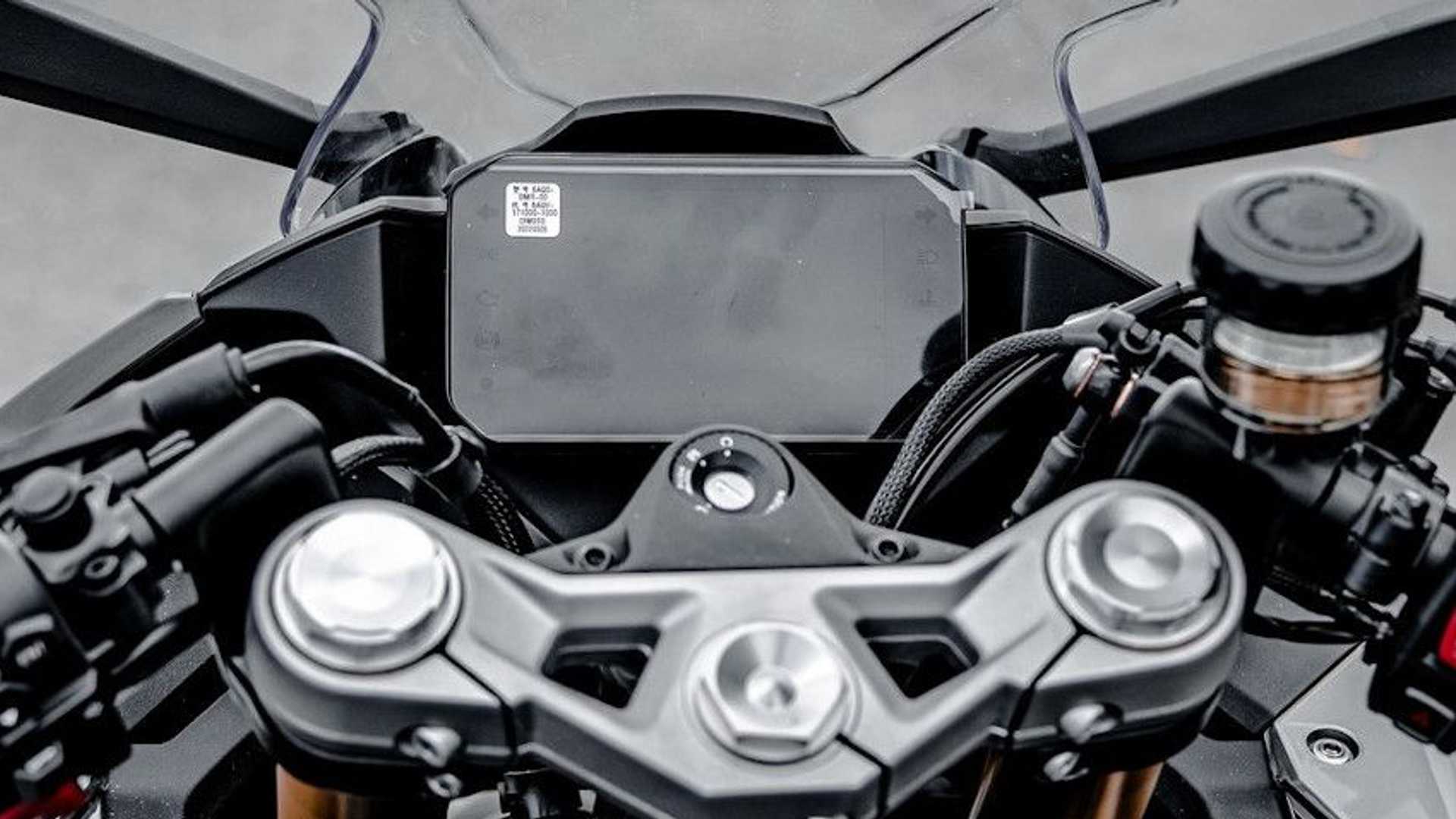 La 450SR faisant pencher la balance à 168 kilogrammes, il est probable que CFMoto devra réduire encore plus la puissance du moteur. On suppose que le 450SR en Europe développera environ 42 à 44 chevaux. Cela dit, les jeunes pilotes à la recherche d’une moto sportive puissante obtiendront néanmoins une machine de haute technologie avec la 450SR, équipée de composants haut de gamme tels qu’une fourche avant inversée KYB, un mono-amortisseur arrière réglable en précharge, un écran TFT couleur et un éclairage LED complet.