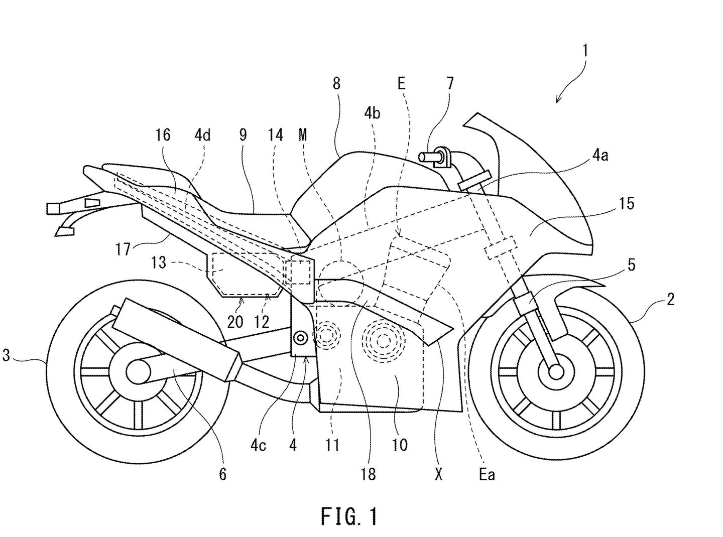 Le premier brevet illustre comment la batterie est maintenue au frais. En effet, une batterie chauffe lorsqu’elle dégage de l’énergie, et contrairement à certaines motos électriques, les brevets dévoilent que Kawasaki a opté pour une batterie refroidie par air, sacrifiant certains des gains de performances d’un refroidissement liquide en faveur d’un coût inférieur, d’un poids plus léger et d’une construction plus simple. Sous la selle, la batterie est normalement privée de flux d’air, mais le nouveau brevet montre des conduits pour canaliser l’air du carénage inférieur, autour du moteur à combustion et dans le bac à batterie sous la selle. Les conduits d’échappement à l’arrière du support de batterie permettent à l’air de s’échapper, ainsi qu’à la chaleur de la batterie.