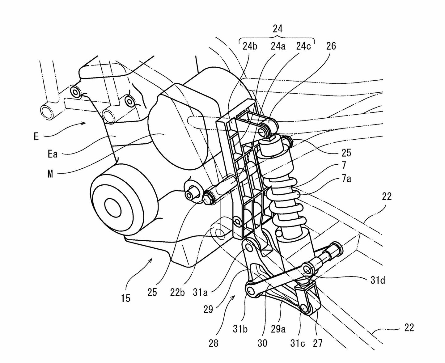 Un autre brevet dévoile la solution technique choisie par Kawasaki pour faire face à un problème pratique créé par la position de son moteur électrique. Les ingénieurs Japonais ont choisi de placer le moteur électrique au-dessus de la transmission conventionnelle de la moto, qui permet au moteur à combustion de faire fonctionner la moto comme une moto classique. A cela, Kawasaki ajouter un embrayage supplémentaire pour engager ou désengager le moteur électrique. Un système de changement de vitesse électronique, ainsi qu’un levier de vitesses rapide, signifie que des commutateurs montés sur le guidon peuvent être utilisés pour changer de rapport plutôt qu’en utilisant le sélecteur, introduisant également la possibilité d’un mode automatique pour faciliter le passage entre les modes thermique et électrique.