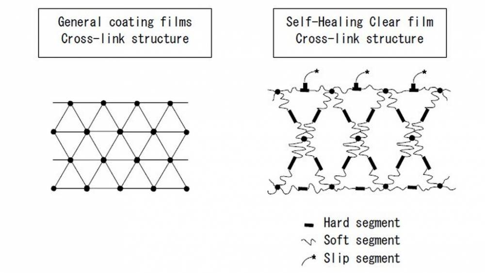 Dans le secteur automobile, ce type de peinture « auto-réparatrice » a déjà été appliqué, mais, basé sur des réactions chimiques, cela peut prendre des semaines pour que la peinture revienne à son état initial. Selon le brevet Kawasaki, dans certains cas, 10 à 20 minutes seulement seraient nécessaires pour réparer les petites rayures, à des températures ambiantes comprises entre 26º et 30º.