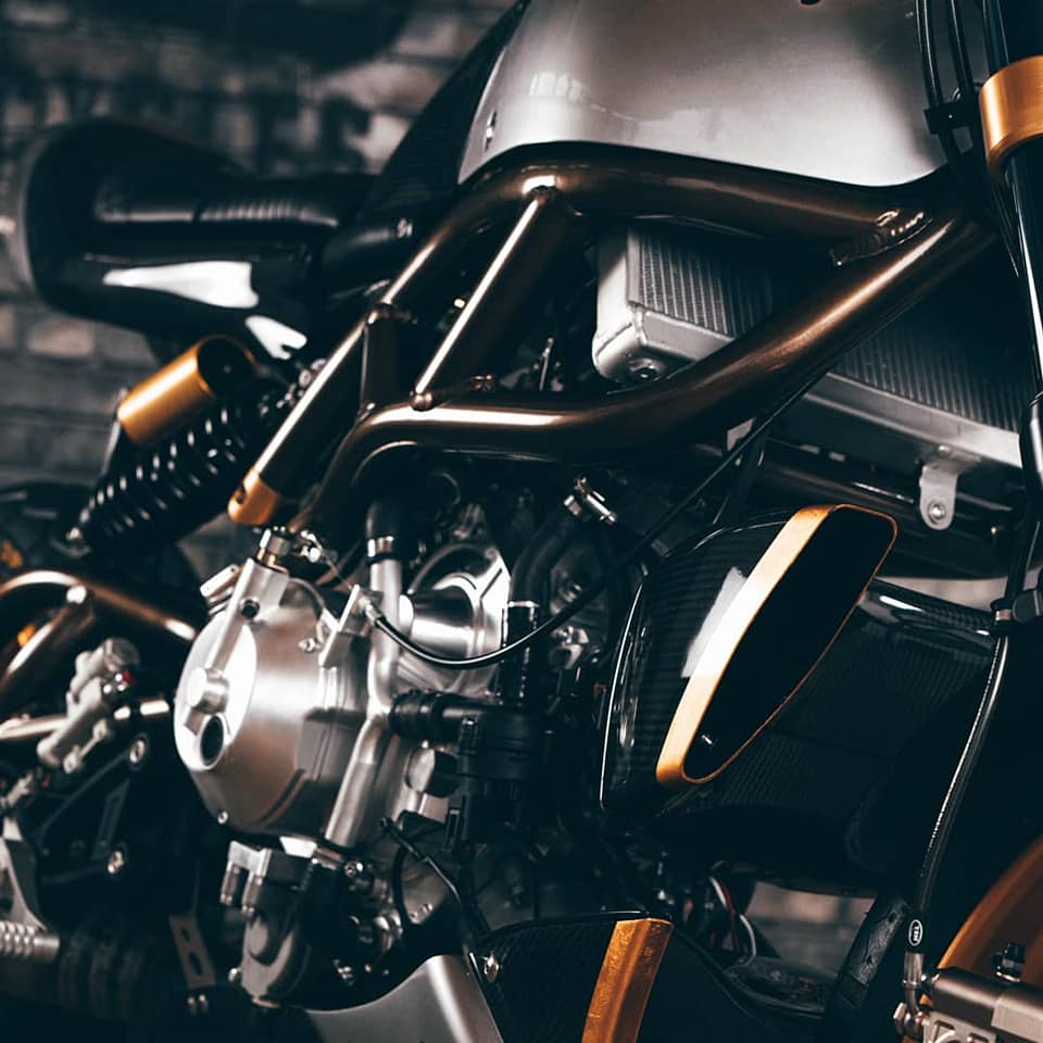 Un prix élevé, certes, qui est toutefois justifié par l’unicité du projet, l’exclusivité du moteur entièrement usiné par une machine CNC, les matériaux utilisés et, surtout, la production limitée. Le résultat est très intéressant en termes de poids : seulement 114 kg grâce à l’adoption d’un moteur deux-temps, et à la qualité des matériaux utilisés pour réaliser l’ensemble.