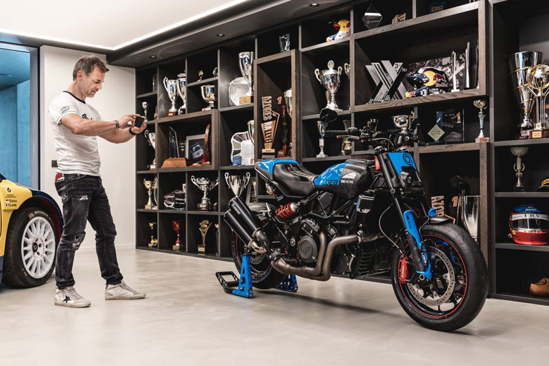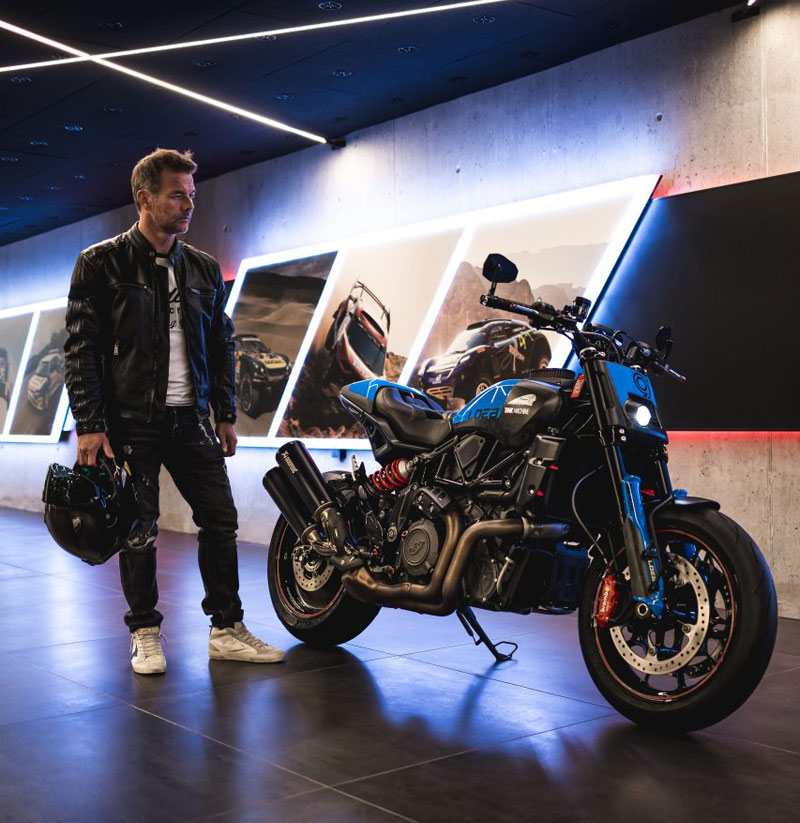 Sébastien Loeb et Tank Machine ont imaginé la ‘FTR Loeb’ comme une interprétation unique du bicylindre en V américain qui célèbre ses neuf championnats du monde de rallye et sa passion pour la moto. Du Rallye Mondial au World Touring Cars, de Pikes Peak au Rallye Dakar, du Rallycross à l’Xtreme E et plus encore, la carrière exceptionnelle de Sébastien Loeb l’a vu démontrer ses compétences légendaires à travers une multitude de disciplines tout en établissant des records en cours de route. Ce que l’on sait moins, c’est que Sébastien Loeb s’est découvert une passion pour les sports mécaniques dans des épreuves régionales de cyclomoteurs avant de s’essayer à la compétition moto sur circuit et en enduro.