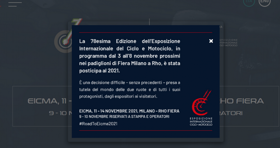 L’annonce est intervenue par une note publiée par EICMA Spa, la société contrôlée par Confindustria ANCMA (Association nationale de la moto et des accessoires de moto), dans laquelle le PDG Paolo Magri a souligné que « la décision a été prise avec et pour toute la chaîne d’approvisionnement ». Magri explique : « la valeur internationale et le leadership de notre événement d’exposition nous ont poussés à ne pas parier sur l’évolution de la situation sanitaire liée à l’urgence Covid-19 et, surtout, à écouter et à protéger l’ensemble de l’industrie du deux roues qui, avec nos partenaires, continue de voir dans EICMA un modèle gagnant ».