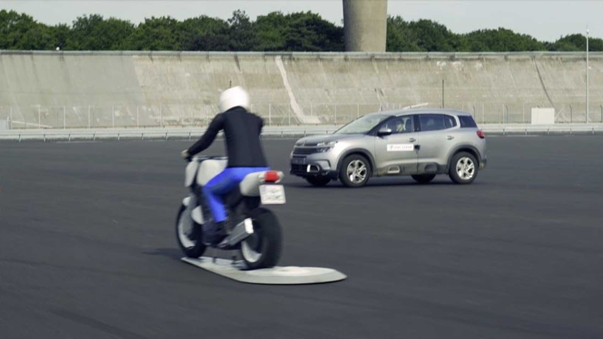 Dans le cas présent, le système émet une alerte au conducteur de la voiture quand il détecte l’arrivée d’une moto pour permettre à celui-ci de réagir. Si ce n’est pas le cas, alors le véhicule à 4 roues freine automatiquement. A l’inverse, une moto équipée du même système V2X n’intervient pas automatiquement dans la même situation, pour éviter de provoquer une perte d’équilibre voire une chute.